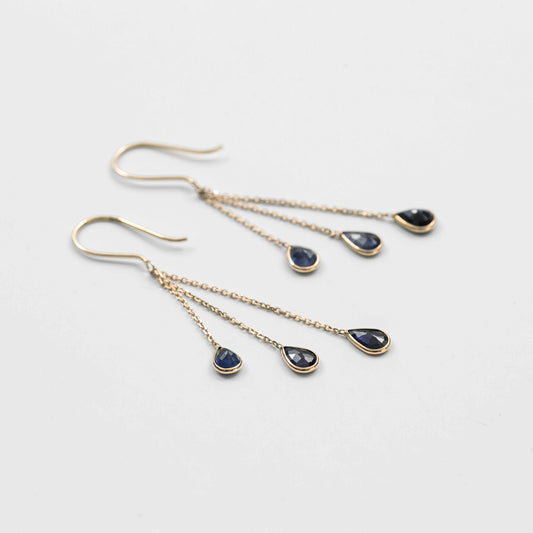 Triple Blue Sapphire chain Pierced Earrings / K18