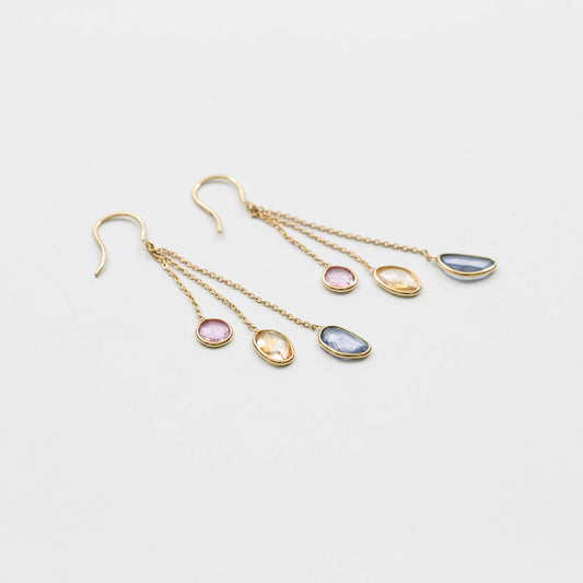 Triple Fancy Sapphire Chain Pierced Earrings / K18