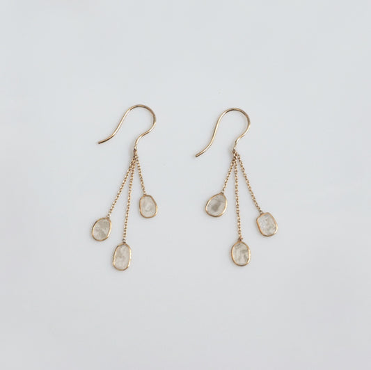 Triple Slice Diamond Chain Pierced Earrings / K18