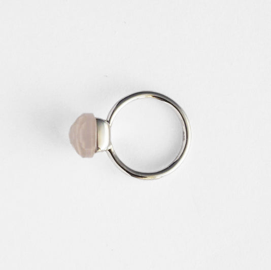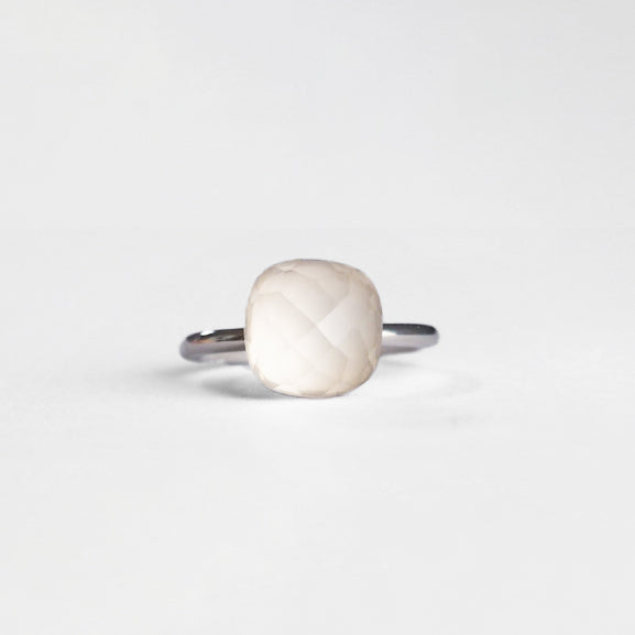 ぷっくりとしたスクエアシェイプで可愛いらしさもあり、光によって変わる透き通るようなお色味が魅力的な商品です。