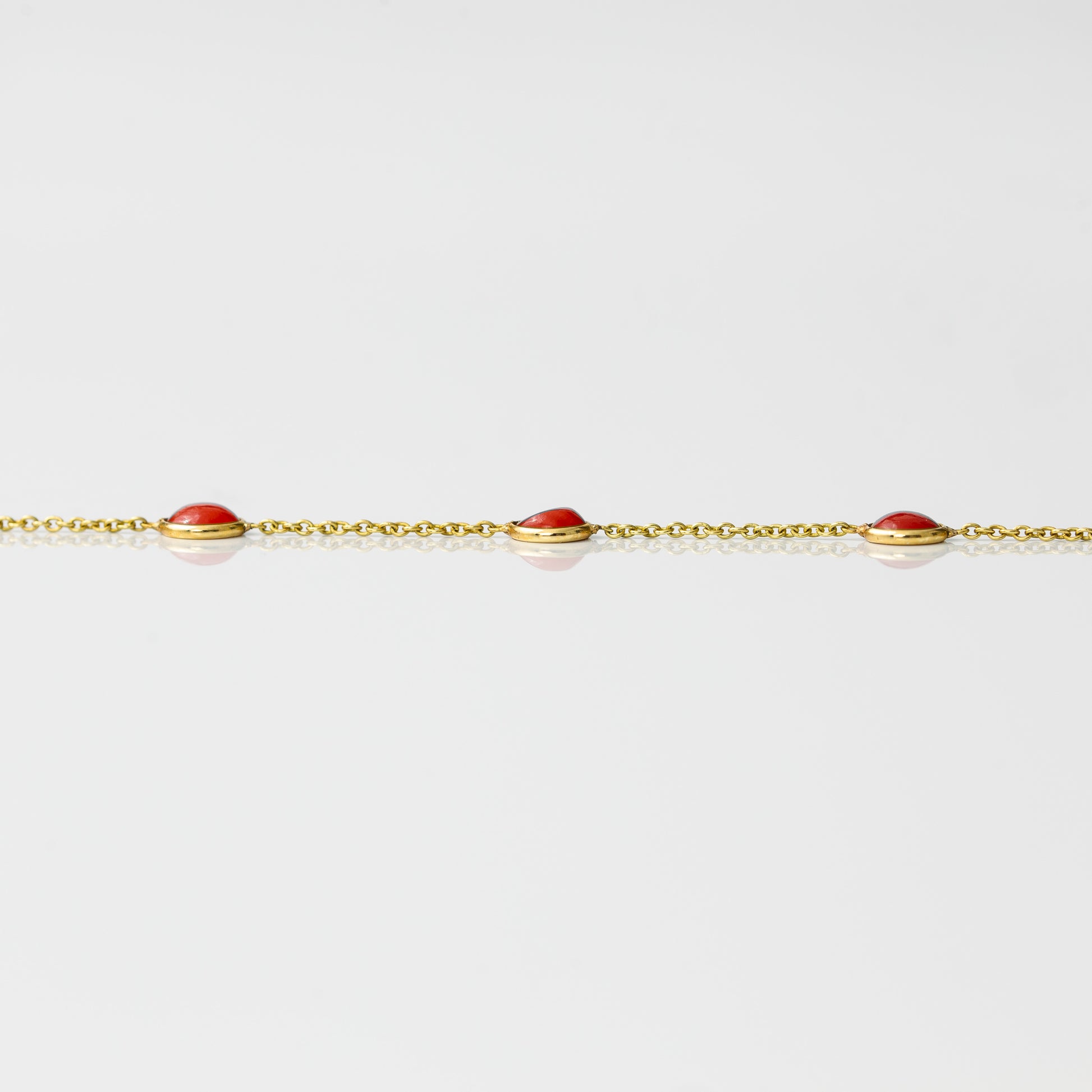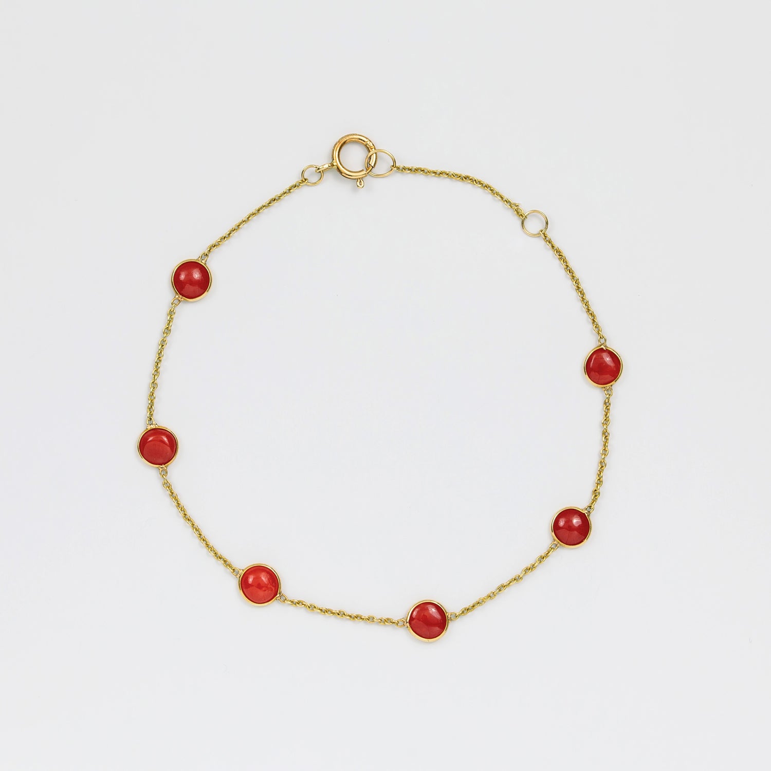 鮮やかなオレンジ色が印象的なサークル型のコーラル石(珊瑚)を「6石」使用したブレスレットです。